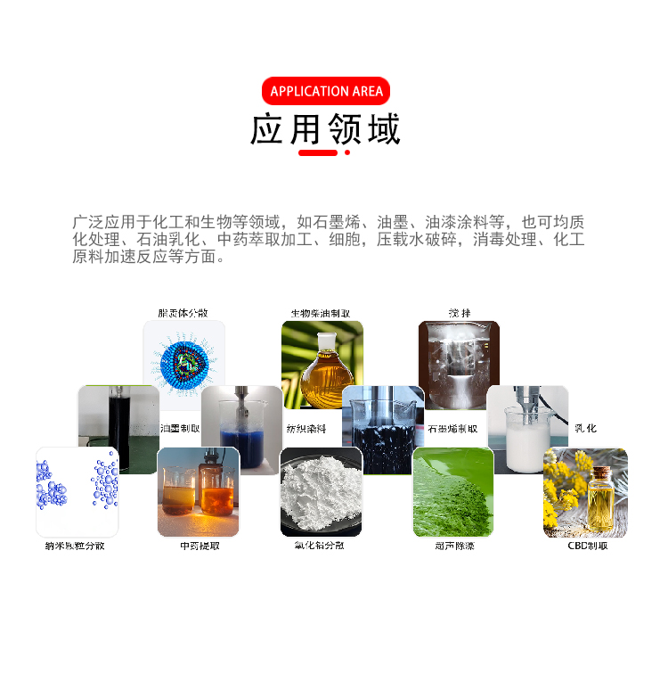 超声波液体处理设备是利用超声波的空化效应,即当超声波在液体中传播时,由于液体微粒的剧烈振动,会在液体内部产生小空穴。这些小空穴迅速胀大和闭合,导致液体微粒之间发生猛烈的撞击,从而产生几千到上万个大气压的压强。这种微粒间剧烈的相互作用产生的微射流会使物料发生颗粒细化、细胞破碎、解团聚、相互融合等一系列反应,从而起到很好的分散、均质、搅拌、乳化、提取等作用。