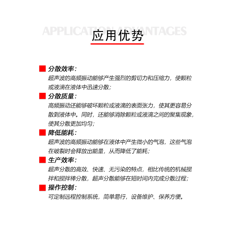 简要描述:超声波纳米涂料分散设备的产品简介:当超声振动传递到液体中时,由于声强很大,会在液体中激发很强的空化效应,从而在液体中产生大量的空化气泡。随着这些空化气泡产生和爆破,将产生微射流,进行将液体重大的固体颗粒击碎。不改变客户现有的生产设备和工艺流程,通过简单的安装就可将你的普通设备升级为带有超声波的化工设备。